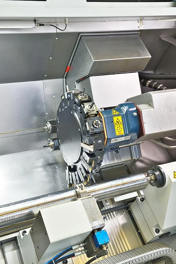 - Dynamic servo-turret with adjustable tool change speed via feed override