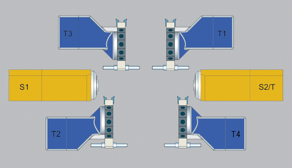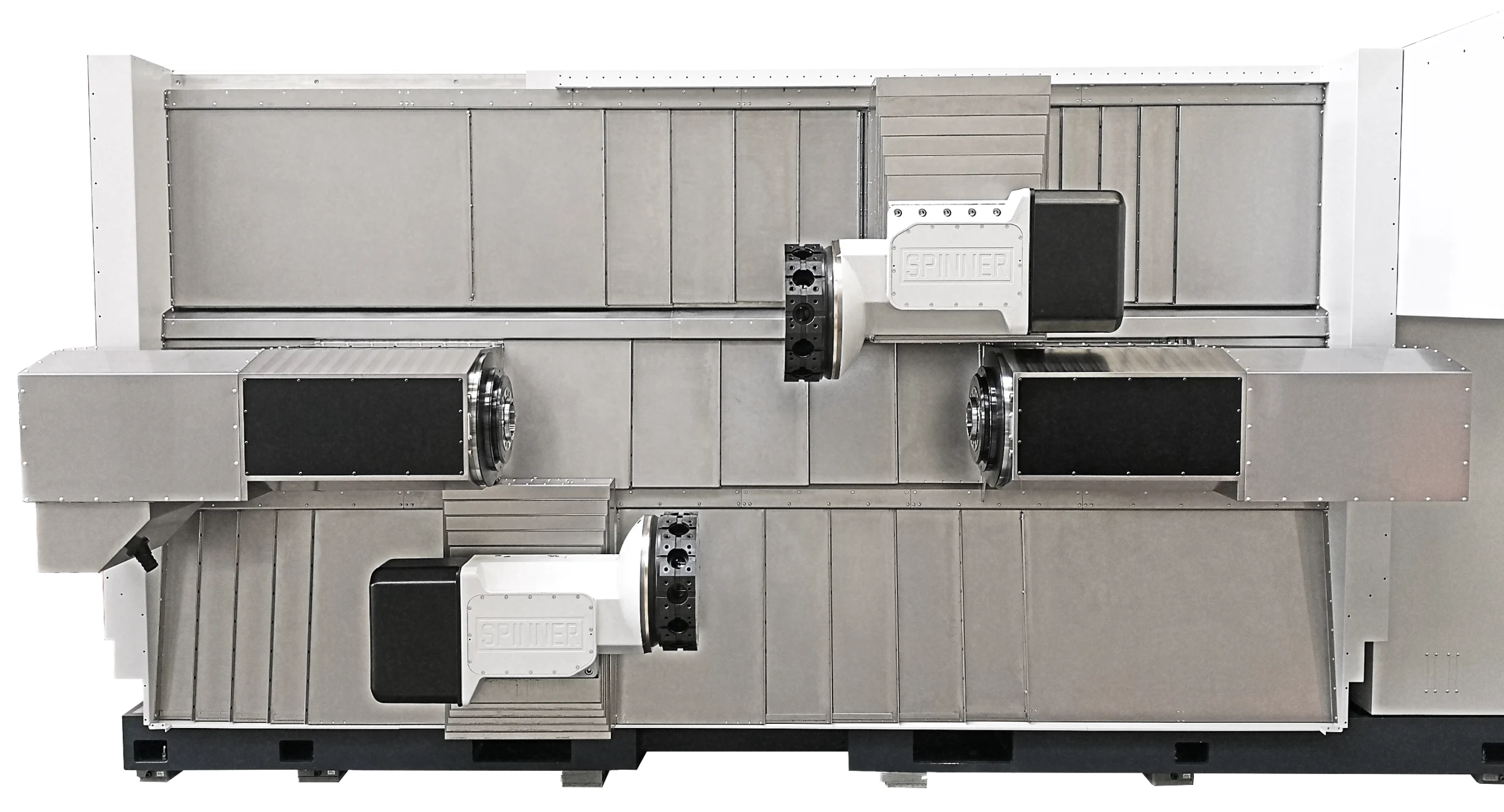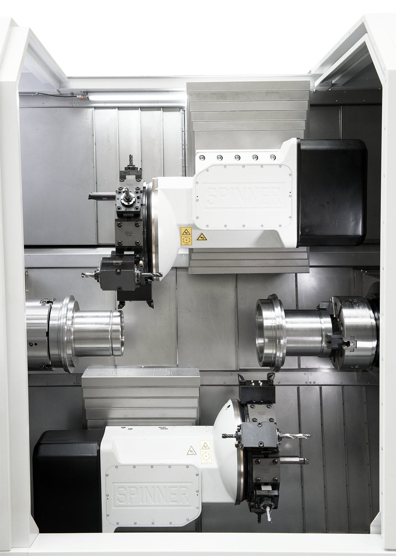 The TTS-85/125 is a multi-turret high-performance turning center for simultaneous machining for medium and high volume turning of large long workpieces with up to four independent high-speed servo driven turrets made by Spinner. All turrets operate independently on the main or counter-spindle or can work on one spindle at the same time if desired.